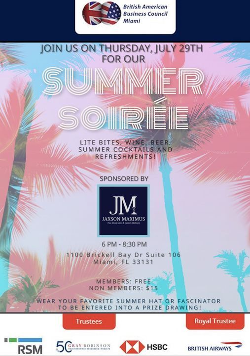 British American Business Council Jaxson Maximus Cocktail Networking Event Jaxson Maximus Miami 29 July 2021